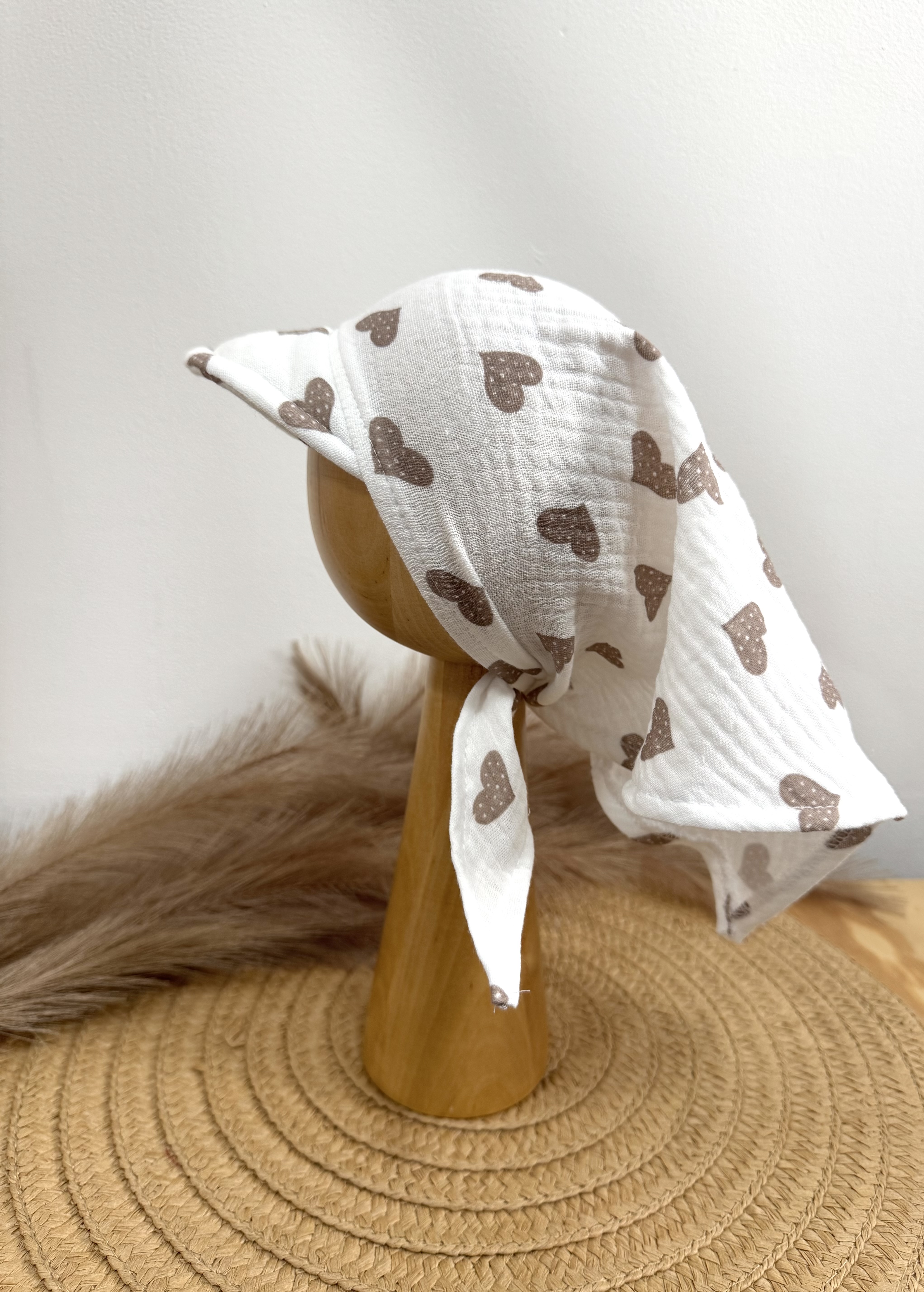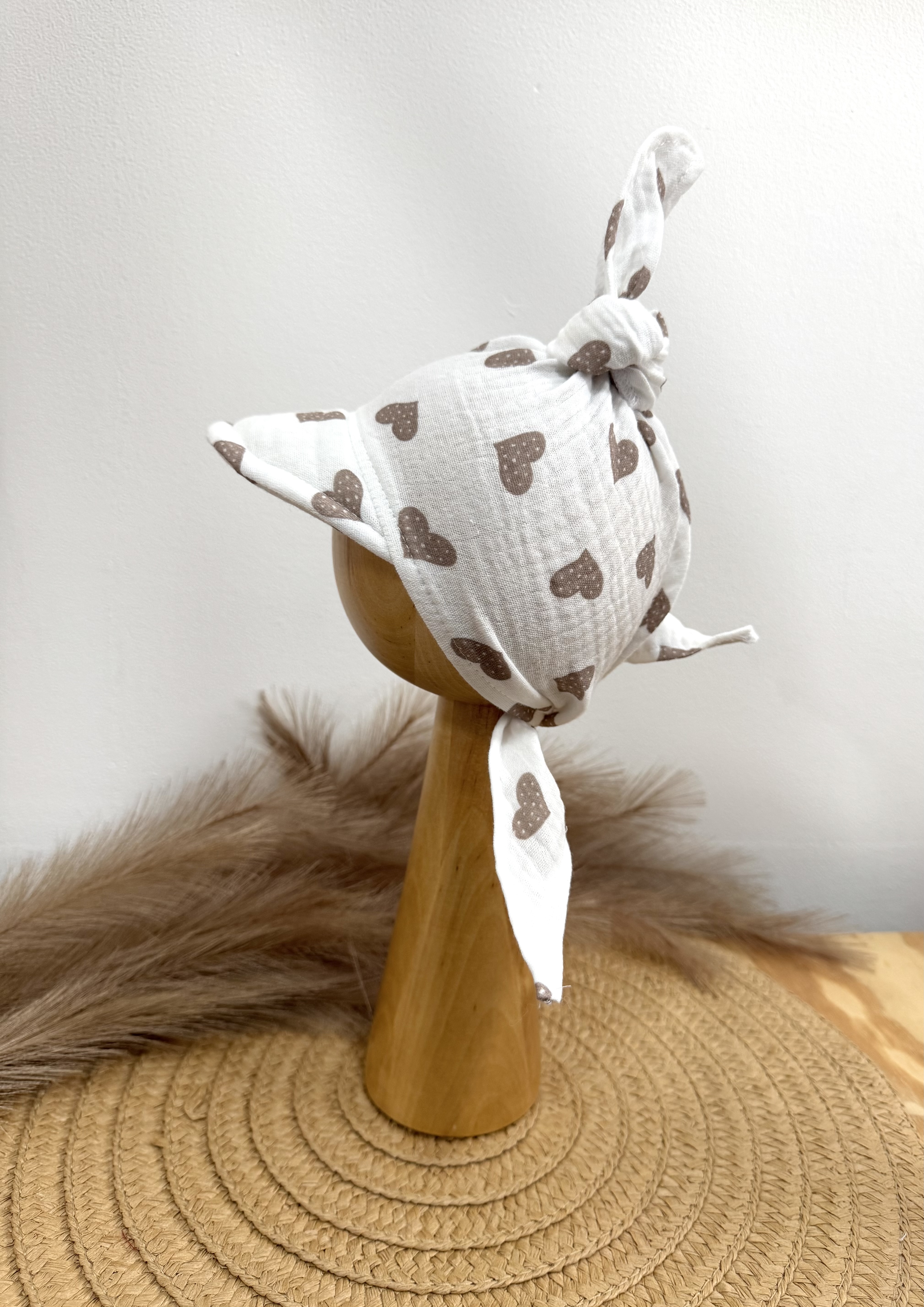 Czapka / chustka muślinowa z daszkiem Serduszka