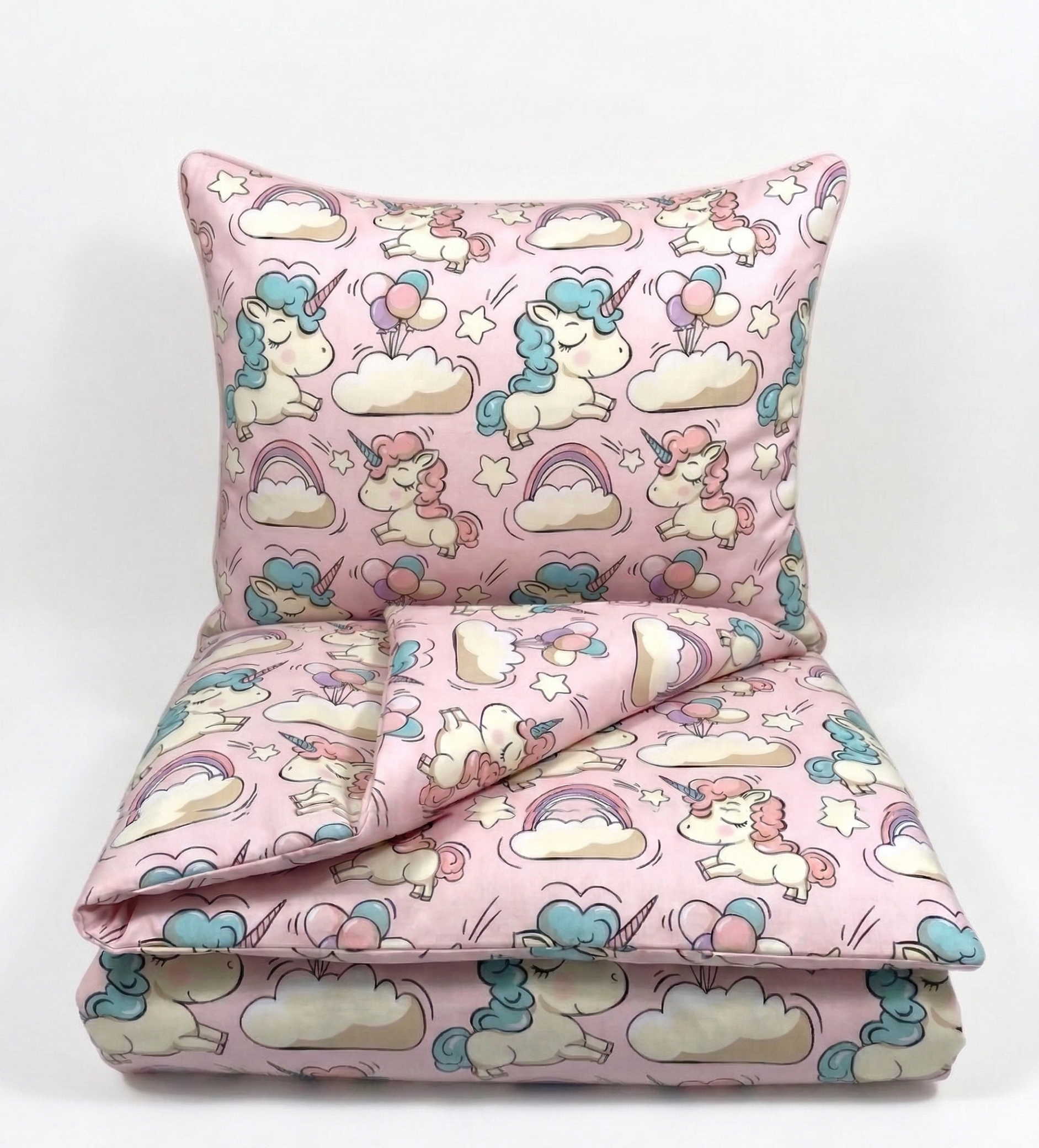 Komplet do przedszkola / żłobka - kocyk / kołderka z poduszką Jednorożce różowe