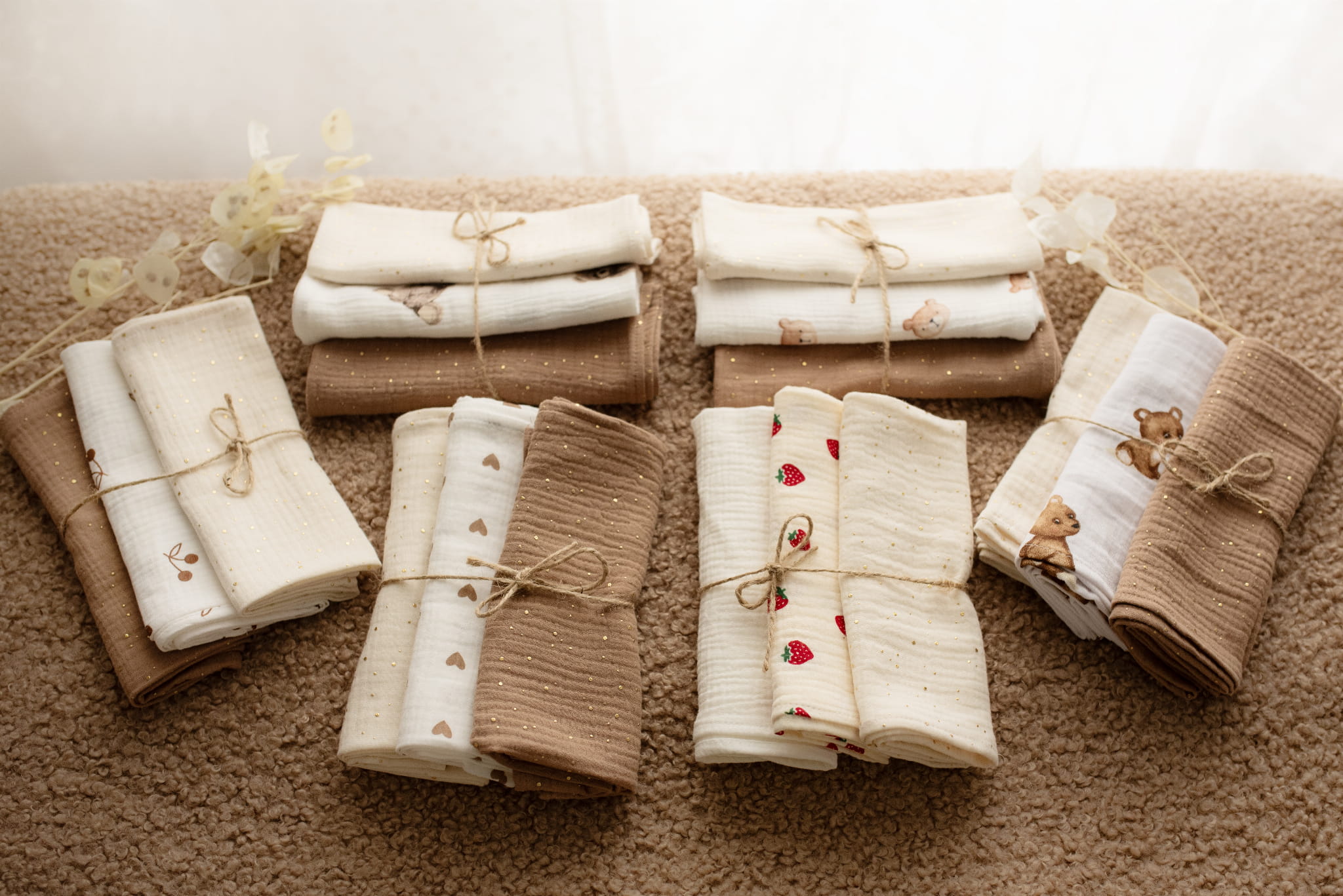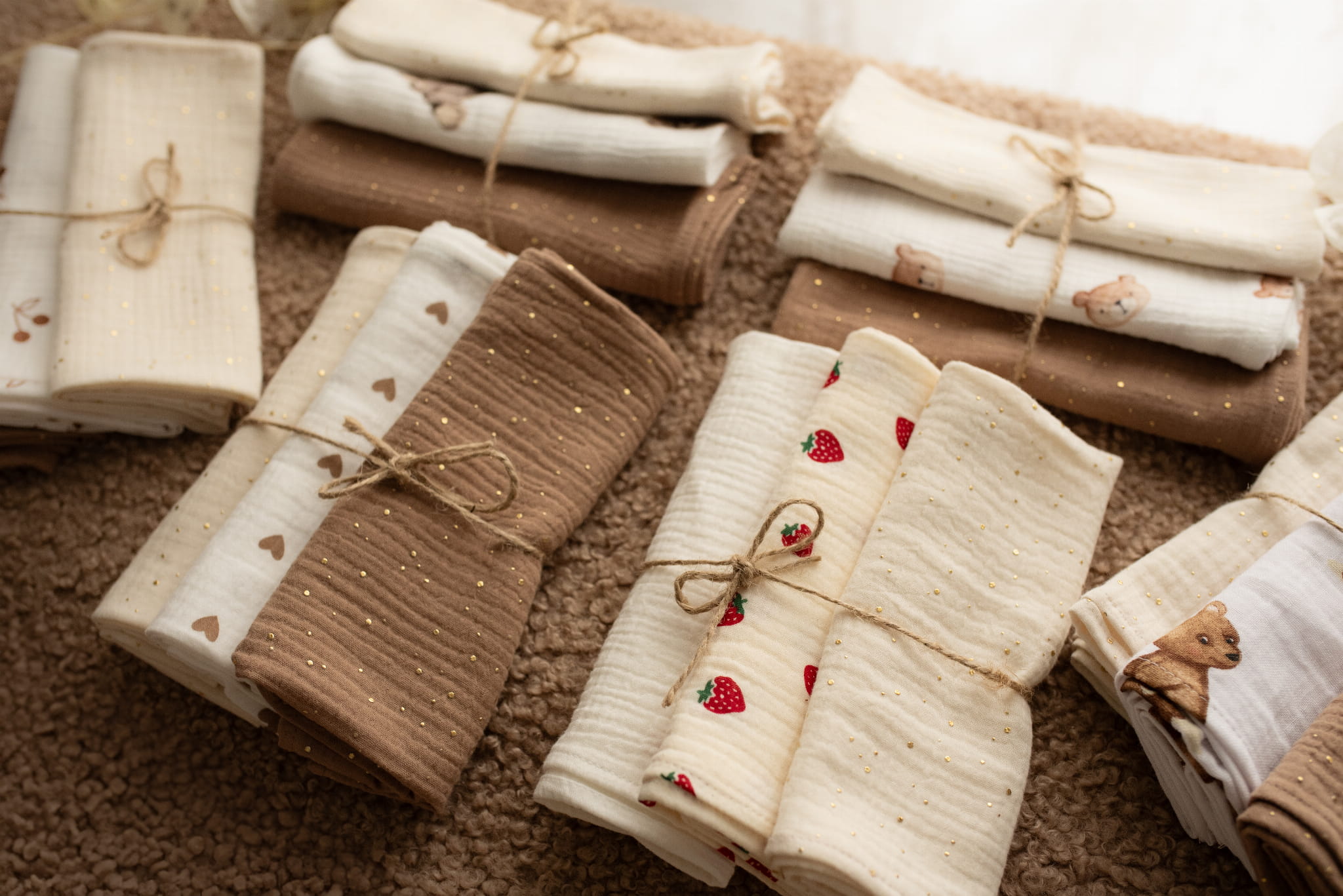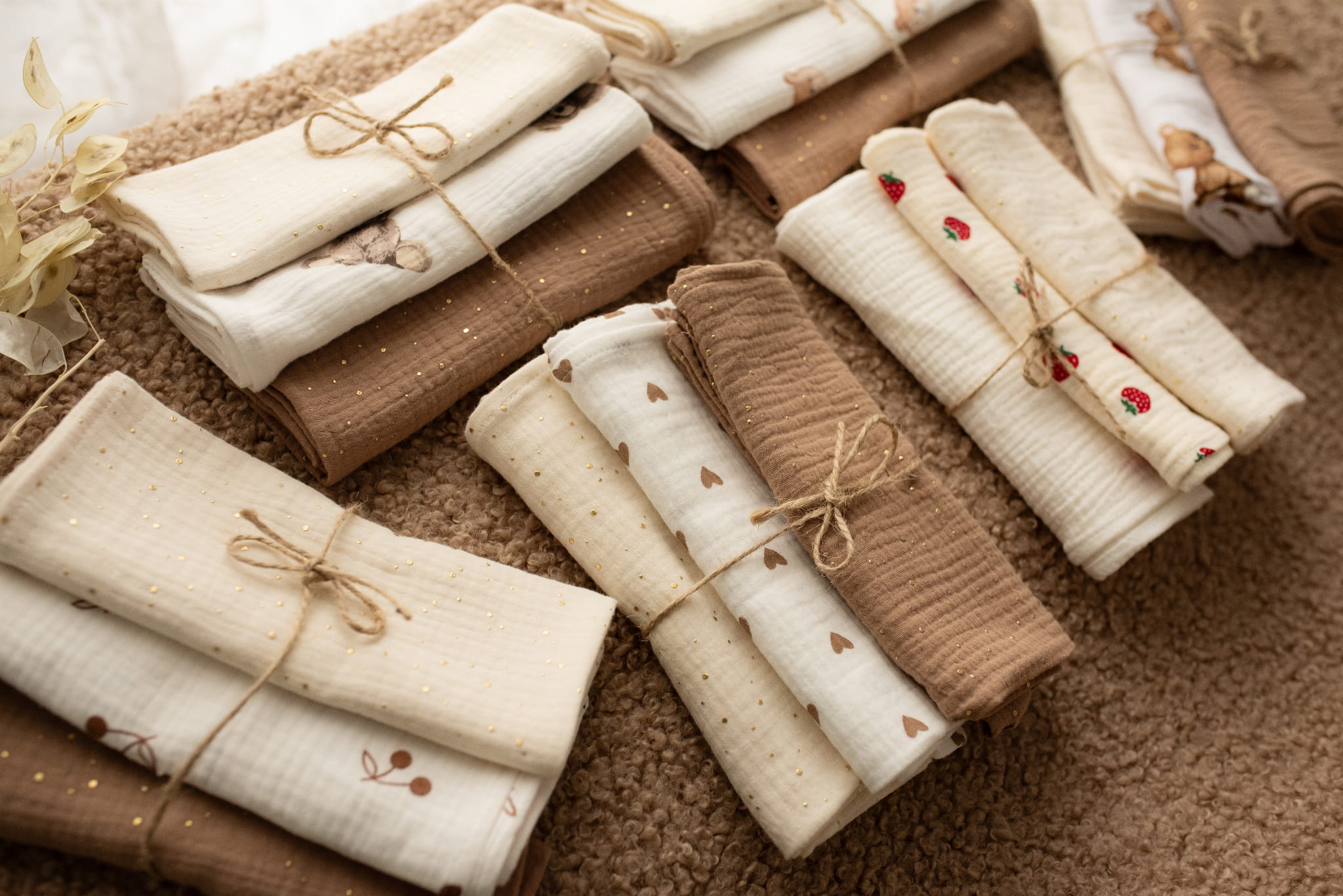 Pieluszki muślinowe Brązowe wisienki boho 3-pak